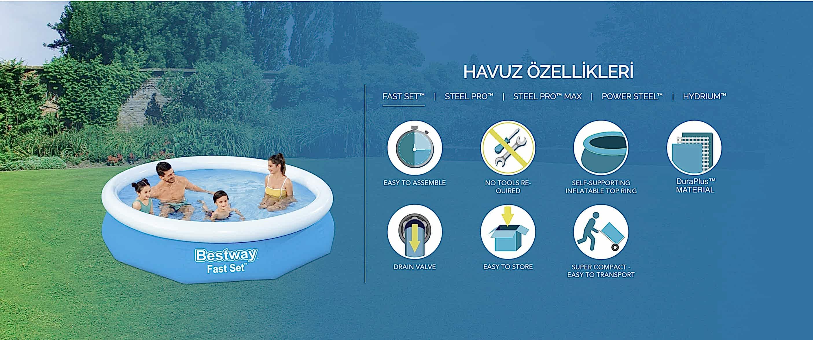 *Bestway serisi tüm portatif havuz ürünleri self montaj ürünlerdir. Kutu içerisinden montaj klavuzu çıkmakta, ayrıca internet üzerinden Bestway montaj videosuna ulaşılabilmektedir. Bu sayede kendi havuzunuzu birkaç saat içerisinde kolaylıkla kurabileceksiniz.