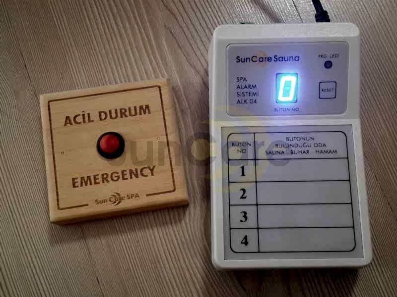 Sauna acil durum butonları özellikle toplu kullanımlara açık saunalar için son derece önemli bir ihtiyaçtır. Otel, sosyal tesis, spor salonu ya da spa merkezlerindeki saunalarda olası bir acil durumda resepsiyonda bulunan görevlilerin en hızlı şekilde yardımcı olabilmeleri için u uyarı sisteminin kurulması gerekmektedir.
